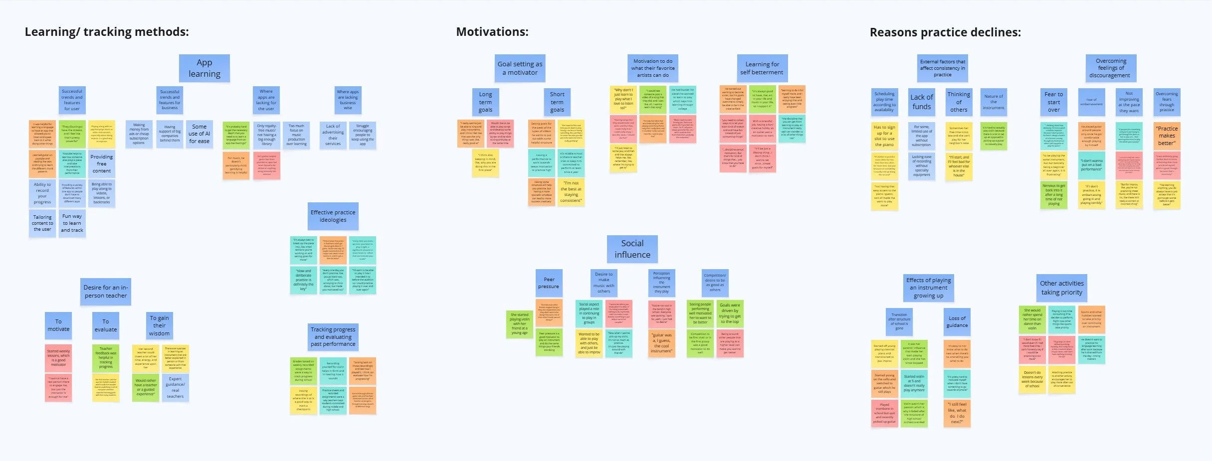 I conducted remote and in-person interviews on 5 participants ranging in experience level from people currently learning a new instrument at the beginner stage to people who have been playing for decades