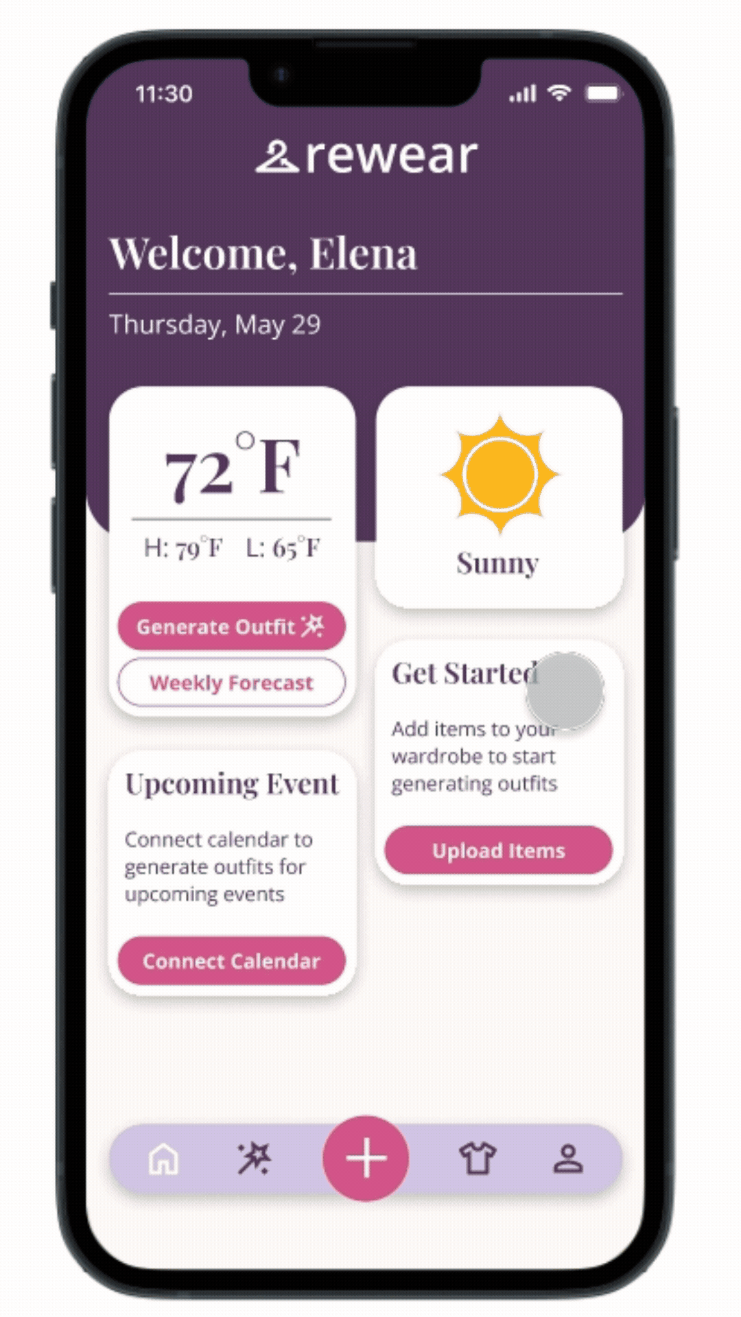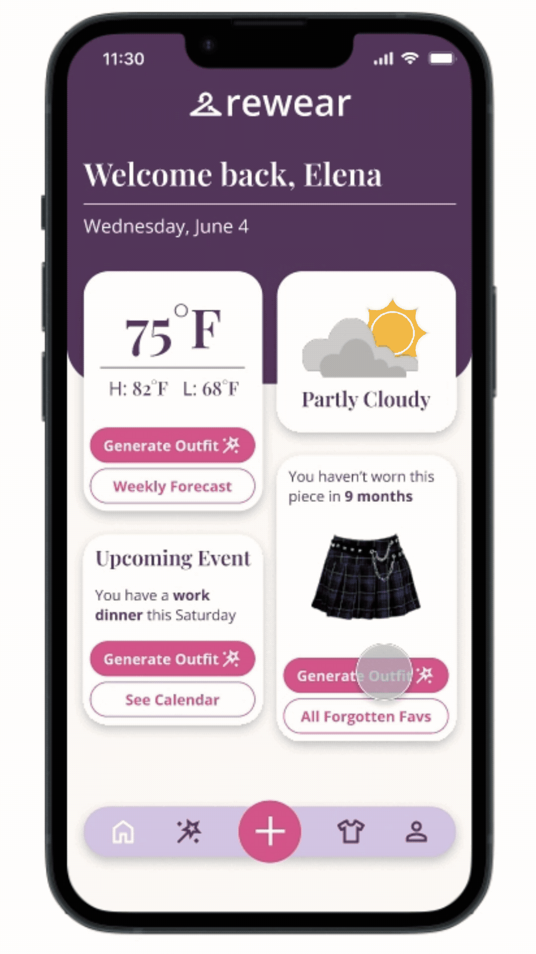 I developed an app that allows the user to see forgotten clothing items and generate personalized outfits quickly without extensive setup.