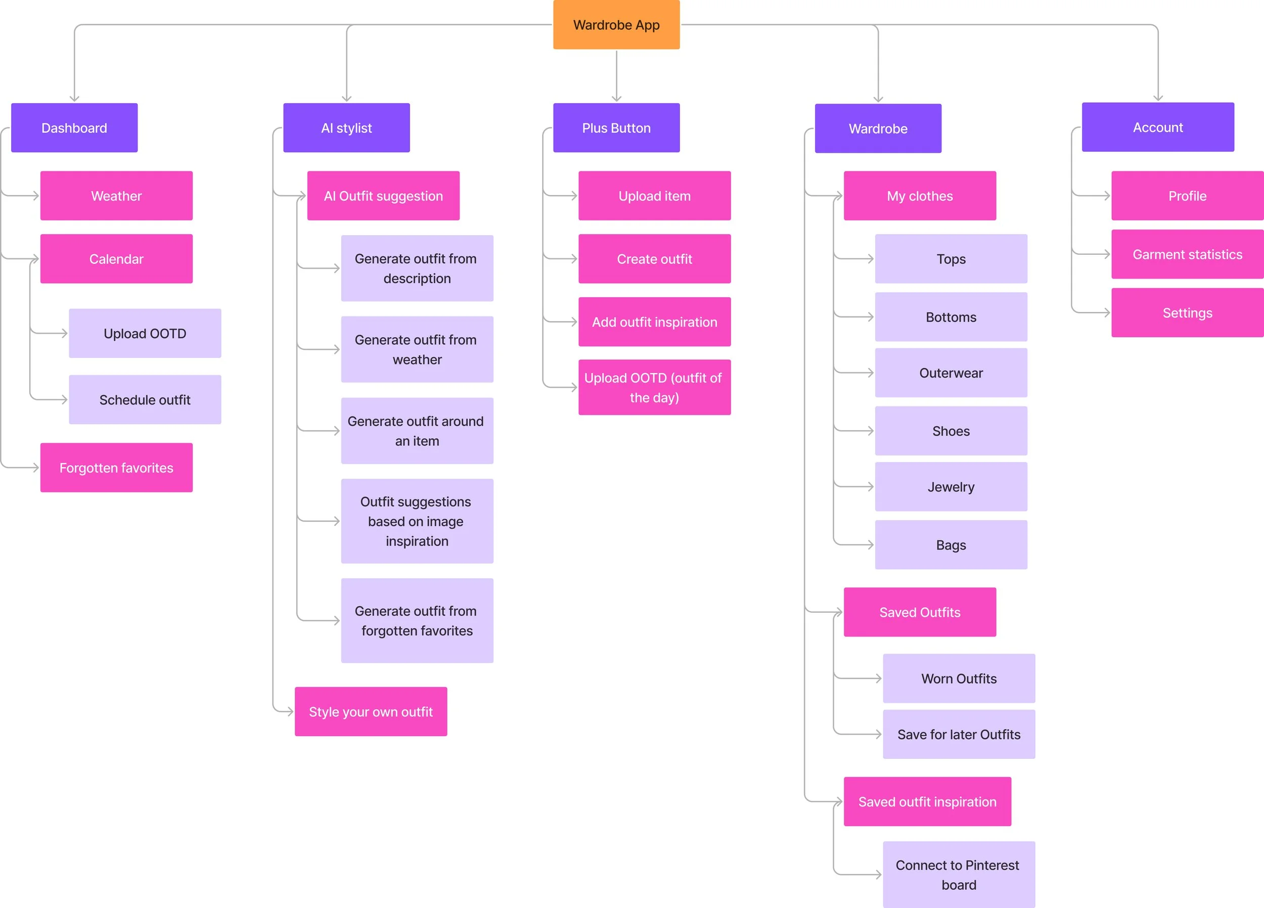 Wardrobe Visibility / Utilization - users tend to forget clothes that aren’t easily visible, users want to utilize their full wardrobe, users need a more efficient way to organize their clothes, users struggle to deal with unused clothing